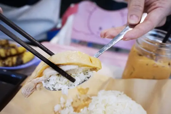 雞湯的香氣整個被包覆在米粒裏頭,泰國香米粒粒分明卻又比一般的飯更有口感,光吃飯也不會覺得無聊