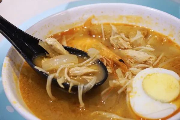 料都要滿出來是怎麼回事(笑),湯底很特別的是用雞湯、椰奶和豆漿下去熬煮,加了椰奶和豆漿後這碗湯非常溫順好喝