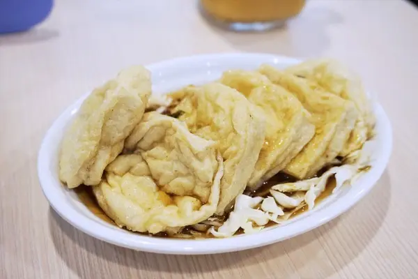 炸過的百頁豆腐表層有些酥酥的,裡頭卻是軟呼呼的嫩口感