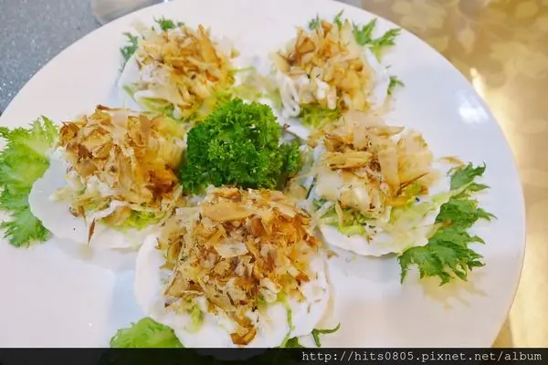 香甜美乃滋的添加.更加提出扇貝的味道來.柴魚和生菜的加入.讓南非珍珠更加的清爽~
