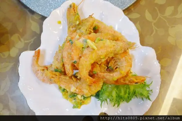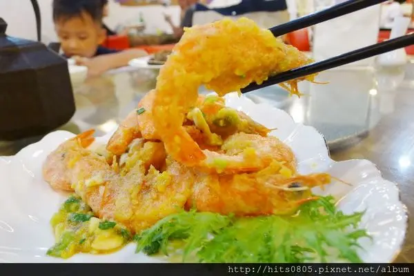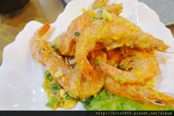 金莎蝦.炸得外皮香酥的鮮蝦.裹上一層薄薄的鹹蛋黃.看起來好好吃的樣子!