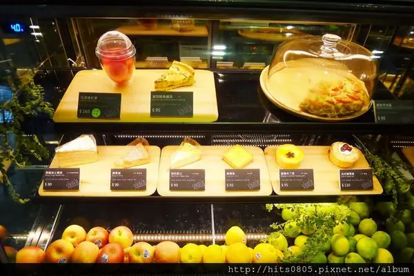 冰箱櫃裡.擺放直著各式各樣的甜品.午後時光.來杯純果汁配甜點最棒啦~