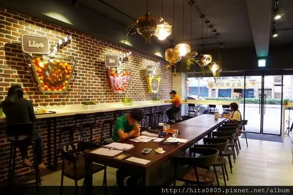 店裡32坪大.座位42席.有面牆馬路的吧台區.座位前都有插座.