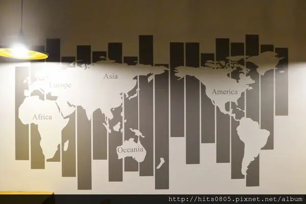 VITA SQUEEZE牆壁裝飾上都有五大洲的地圖