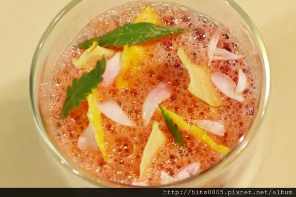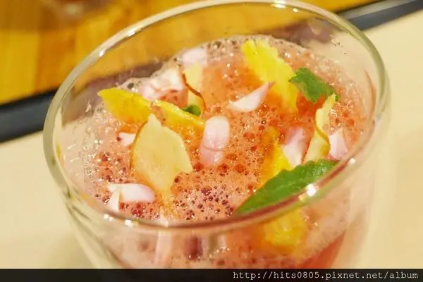等待一會兒的時間.餐點陸續上桌了.首先上桌的是不加一滴水的果汁