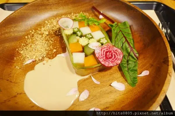 蔬菜格子趣.先將蔬菜煎過.在以冷盤的方式來作呈現.頗有義式菜色添入法式作法