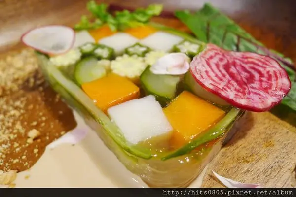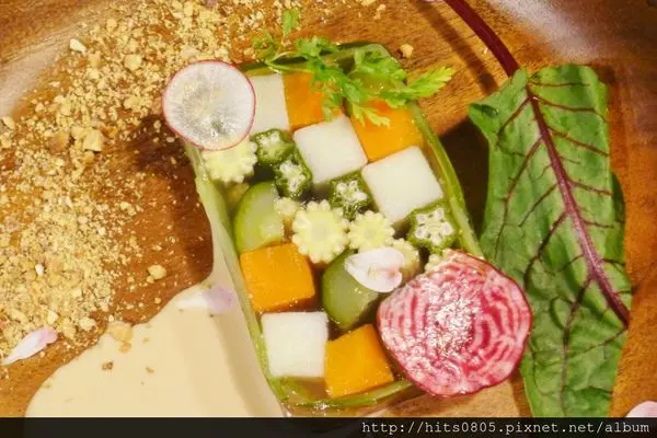實際嚐嚐.發現外層透明的凝凍是蔬菜高湯凍.集結高湯裡所有精華.味道香濃