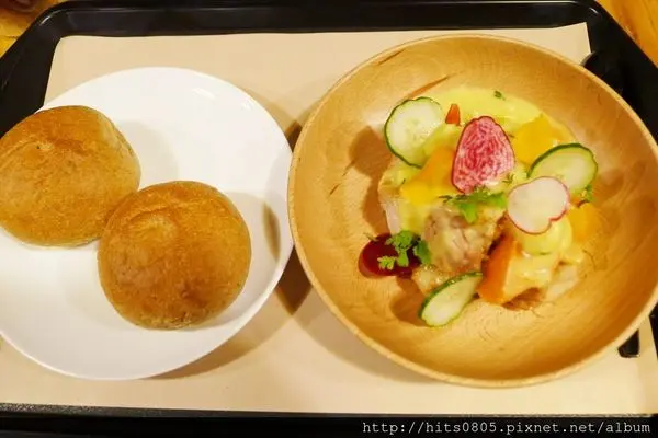 隨餐附上兩個小圓麵包.麵包屬於歐風麵包.麵包體偏扎實