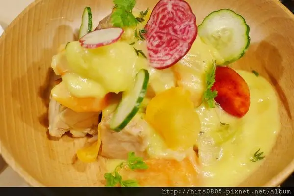 經典諾曼蒂.軟嫩的雞腿肉搭配著繽紛蔬果.淋上香濃的奶油白醬.外觀看起來好誘人