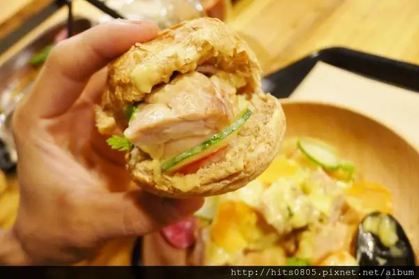 也可以搭配著麵包一起吃.看起來有點像是小漢堡.