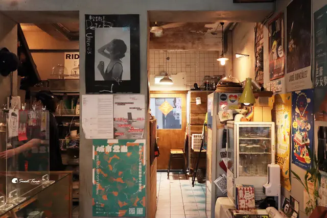 屋內貼上了許多海報,也擺了相當多的老物及杯器,最酷的是沒有經過太多的整修,把四周的牆面及地磚保留下來,雖然有點雜亂,但又讓人忍不住想探索,我想這就是老屋的魅力吧!
