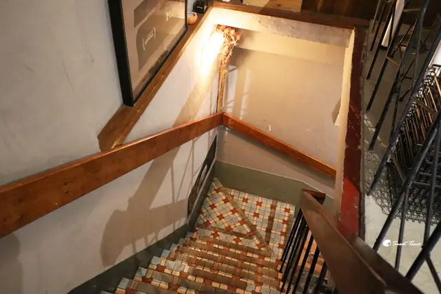 這樓梯又窄又陡,我覺得不是很適合老人家或是小朋友,不過上面的磁磚設計一直吸引我,真的好復古喔。