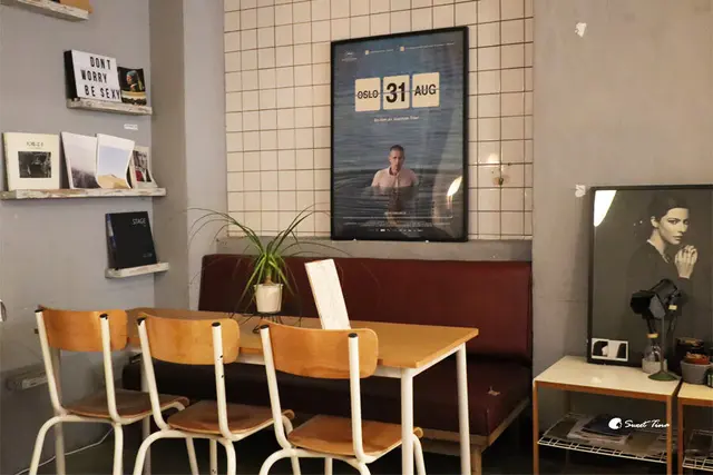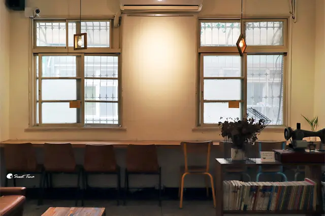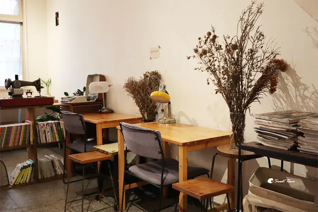 這二張桌子應該是書桌? 好適合帶本書來閱讀,一旁的書架上也有擺放不少書籍。