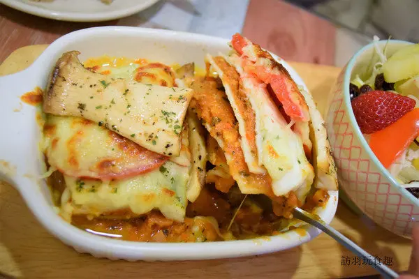 一片片的千層麵與鮮甜番茄肉醬堆疊口感特別