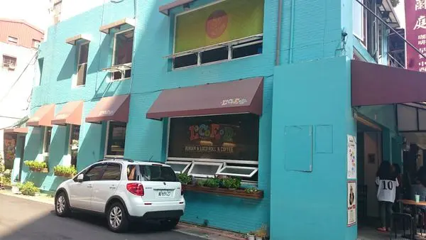 地點在華航後面的巷子裡,準確的說,是在玫瑰夫人餐廳後面的巷子裡。藍色外觀的建築物,非常顯眼,色彩繽紛整個讓人心情大好。照片左邊是內用的入口,右邊是點餐櫃台。