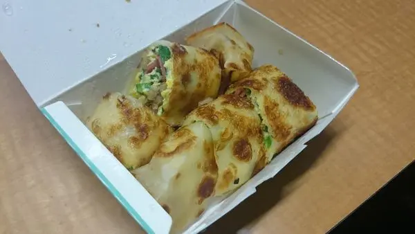 三星培根蛋餅 (NT$45)。蛋餅系列之三星蔥加培根,蛋餅還是很好吃,三星蔥也很新鮮,但這個口味就比較普通一點。