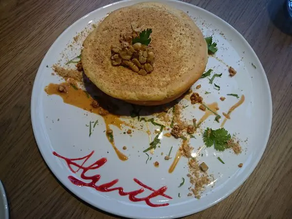每份鬆餅都會「簽」上製作者的名字,雖然這份的名字看不太懂,無論如何還是很感謝廚師。