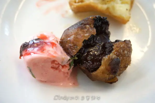 中間是半融的苦甜巧克力 再佐以冰淇淋