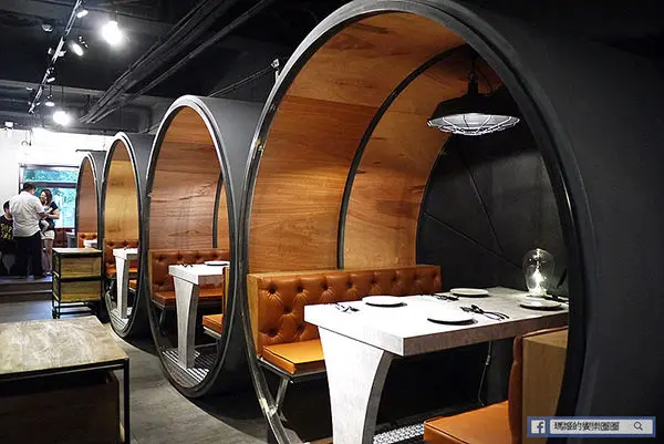 二樓的另一邊就是很夯的水管造型用餐區,半包廂式的設計,有4-6人的座位設計,想坐這裡得事先在訂位時註明,聽說是一位難求的情形,大家都想坐在這裡,連我當天也有問服務人員我不能坐這裡嗎?一整個很想嚐試。