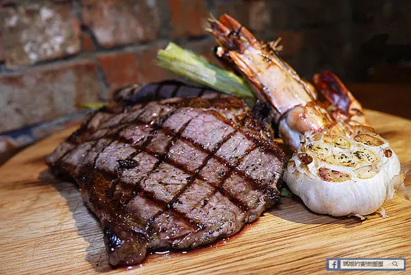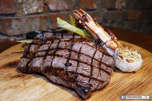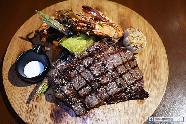 「火烤美國CAB肋眼牛排+2支直火海鮮大明蝦」,超級吸睛的組合