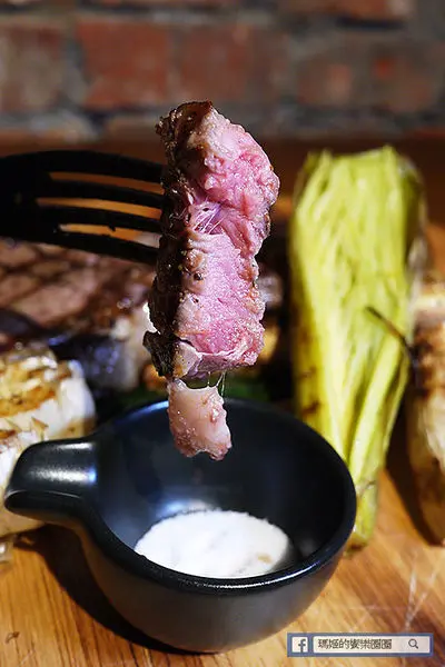 看看切開來的肉質微透的粉紅色,夾帶著油花的質感呈現多汁不乾柴的口感,吃在嘴裡那肉質和牙齒間的磨合是十分協調的,滿溢的牛肉甜味更是在外層濃烈的果木炭烤香氣中,更加突顯。