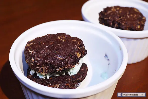 外層的巧克力燕麥有個適當的甜度,咀嚼中濃郁的香氣散發出來,裡面夾的薄荷巧克力冰淇淋很好吃呢!不過吃了甜點沒有簡單的茶或美式咖啡來配總覺得不太完整,若在套餐裡能有此基本配備我覺得會更完美。