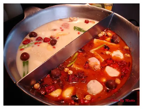 鴛鴦鍋一共有二種組合一種是膠原蛋白美顏鍋+無老長生辣香鍋