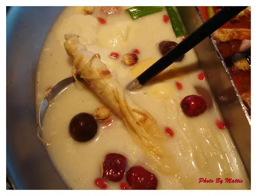 冰淇淋豆腐鍋的湯底還特別加了一根蠻大的人蔘讓整個鍋有補氣的功效