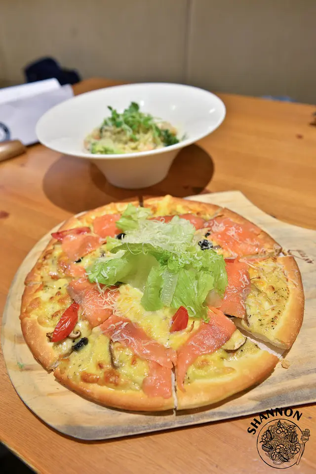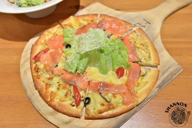醃漬生燻鮭魚片佐奶油微辛香披薩