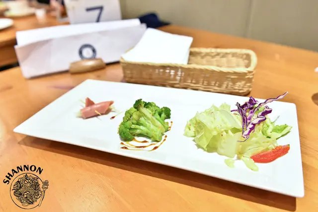 朋友本身不吃肉類只吃海鮮及蔬菜所以點了這個一起享用,味道覺得還不錯但是有一點甜口,鮭魚給的蠻大方的看得出來且兩人吃也覺得很夠