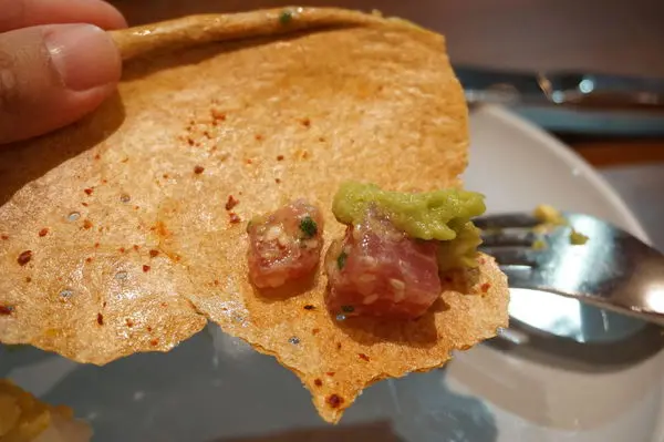加州風味的鮪魚酷多 是新鮮的生鮪魚切丁