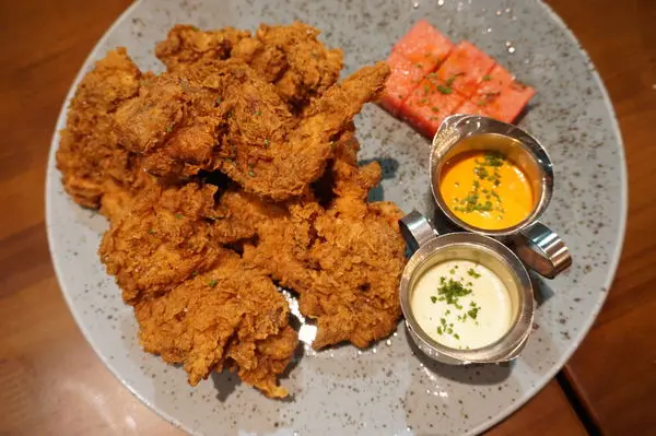 浸潤於buttermilk中使之嫩化來增添風味
