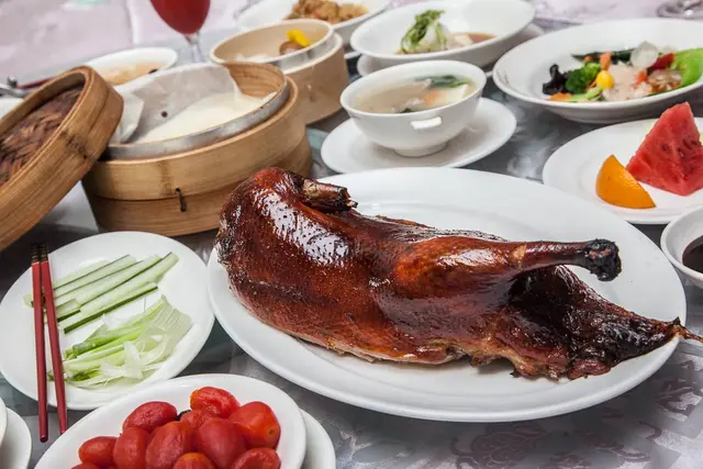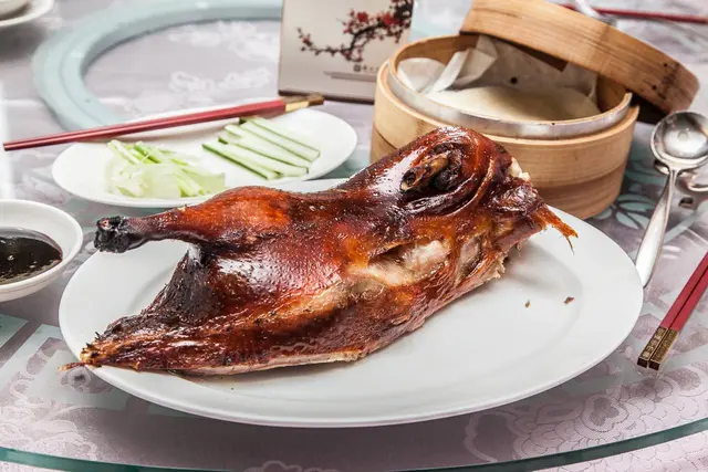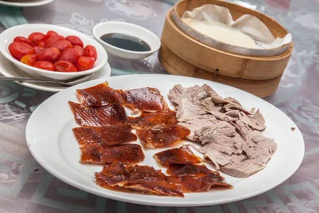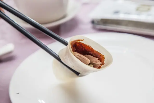 片好的鴨肉服務生貼心的幫我們把我們捲好,沾上特製的甜麵醬、大蔥跟小黃瓜,當然也可以選擇自己包