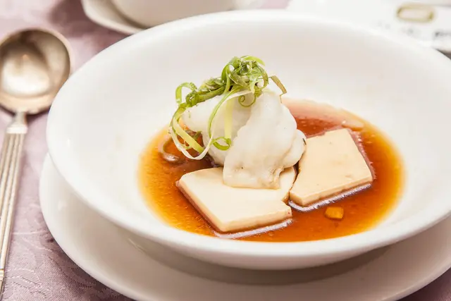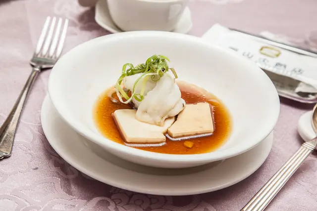 乍看之下看似簡單的蒸魚片豆腐,但這裡可是圓山大飯店,哪可能這麼簡單!