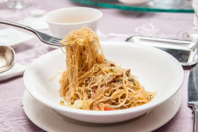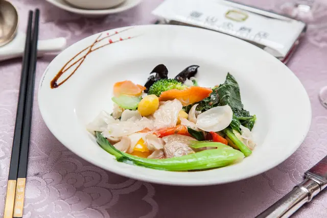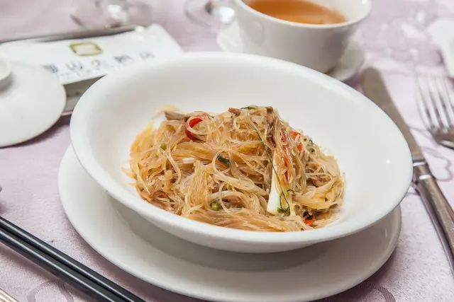 這道真的是跌破大家的眼鏡,看似平淡無奇的炒米粉,老話一句,這裡可是圓山大飯店呢,不可能這麼簡單!吃下一口米粉,米粉又Q又彈又濕潤,醬香氣十足米粉極為入味,更特別這米粉有股大火快炒留下的鑊氣,像是燒烤的炭烤香一樣,吃上一口就停不下來,這米粉目前為止吃過最棒的米粉料理!