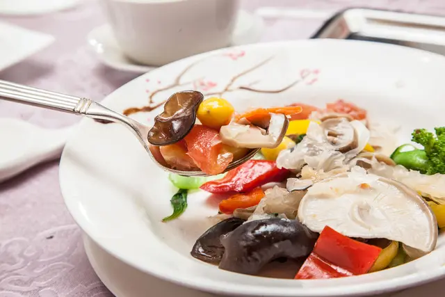 金龍片皮鴨外皮酥脆而鴨肉鮮嫩多汁,鴨皮薄脆看似不帶油脂,入口鴨油爆發非常飽嘴的鴨油甘甜,值得一提圓山大飯的所使用的面皮稍厚,還可以吃到麵皮Q軟的咬勁及麵香