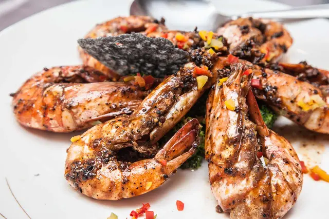 來到圓山大飯店其還有許多單點菜色必點,買餐券省下的錢就可以吃些好吃的囉,必點!黑白胡椒蝦!這胡椒蝦可是主廚的得意之作,咬咬以為這蝦是用炸的再來炒胡椒,原來不是!是用生蝦去料理,不經過油炸,蝦身吃起來帶有奶油香及黑白胡椒的味道,蝦身極為入味但熟度剛好,圓山必點功夫菜之一