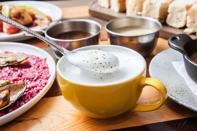 卡布奇諾蘑菇湯也很特別,是用咖啡杯盛裝,光從外觀真的很像一杯卡布奇諾,上面的奶泡相當綿密,搭配下頭的蘑菇湯,清甜甘美