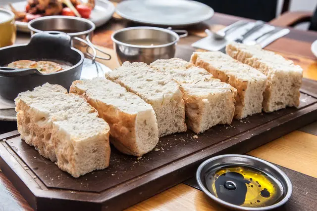 直火烤麵包也是棧 F-U Kitchen 直火廚房自製的,直火燒烤,麵包裡還加入了香料一起烤,外層麵香十足且帶有酥脆感,裡面鬆軟有彈性,附橄欖油巴薩米可醋,但咬咬覺得沾湯一起吃更棒!