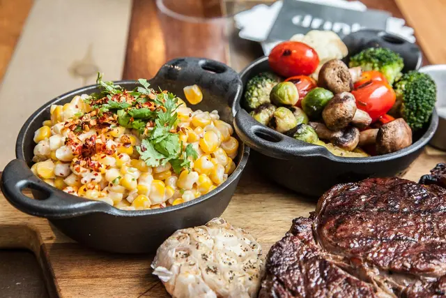 隨排餐還有搭配烤蒜頭、蔬菜及奶油玉米,搭配著佐餐增加食感樂趣,咬咬超愛這裡的烤小甘藍菜,微微的苦味回甘好好吃!
