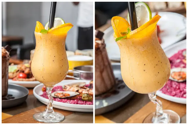 棧 F-U Kitchen 直火廚房會隨著季節推出期間限定的飲料,夏日當然就是芒果季囉,熱帶百香芒果是用芒果及百香果做成的冰沙,藉由兩種不同風味的酸甜水果交織出有如戀愛般的夏日酸甜滋味