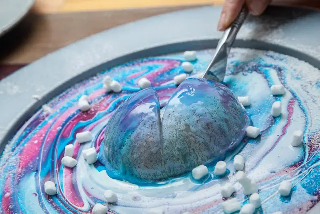 然後冰鎮之後再撒上小棉花糖,看起來就像夜空裡的銀河一般,超美的!