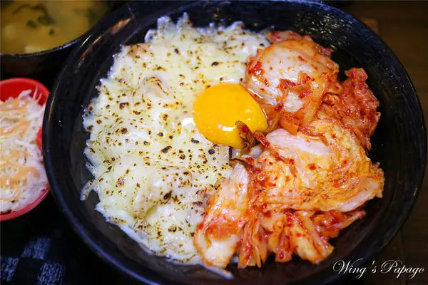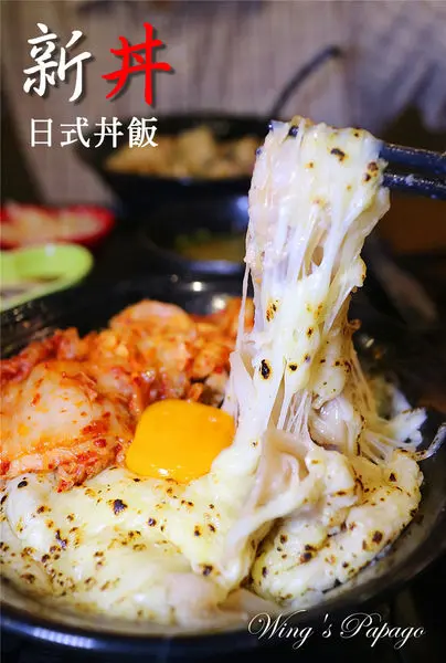 看看這舖滿焗烤起司加上韓式泡菜的韓美新丼,