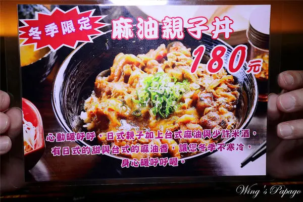 我們到訪這天就有冬季限定的世界獨家創新料理「麻油親子丼」。