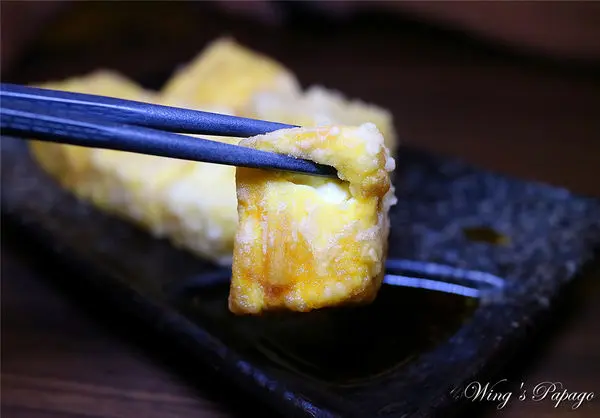 使用的是雞蛋豆腐酥炸後搭配日式醬油,ㄉㄨㄞ ㄉㄨㄞ的水嫩口感,