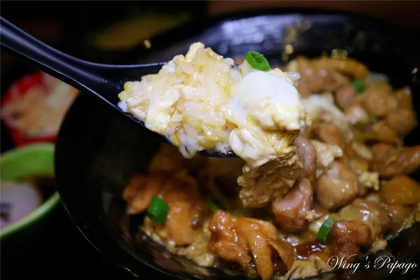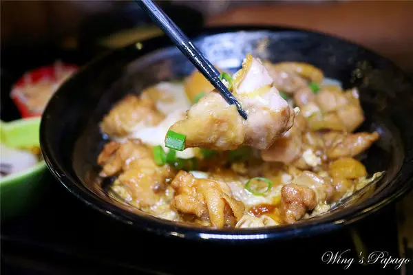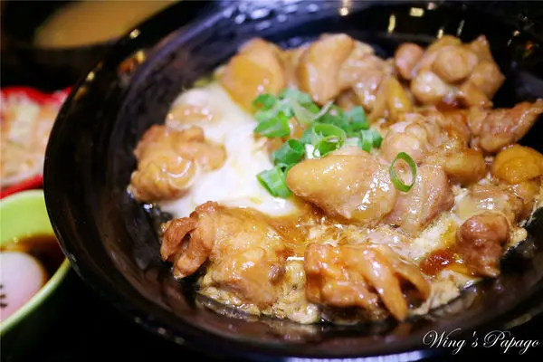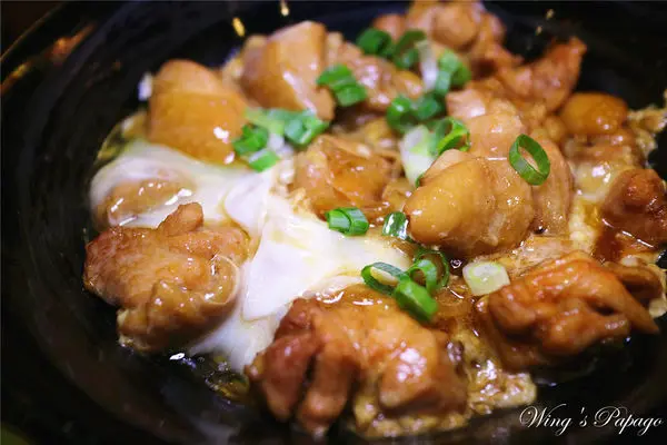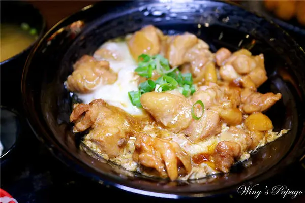鮮嫩的去骨雞腿肉佐柔嫩蛋花及洋蔥,入口散發著濃郁的麻油香氣及日式醬汁甜香,