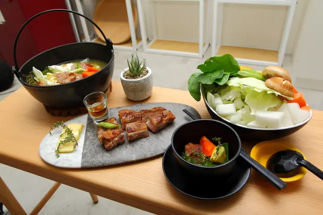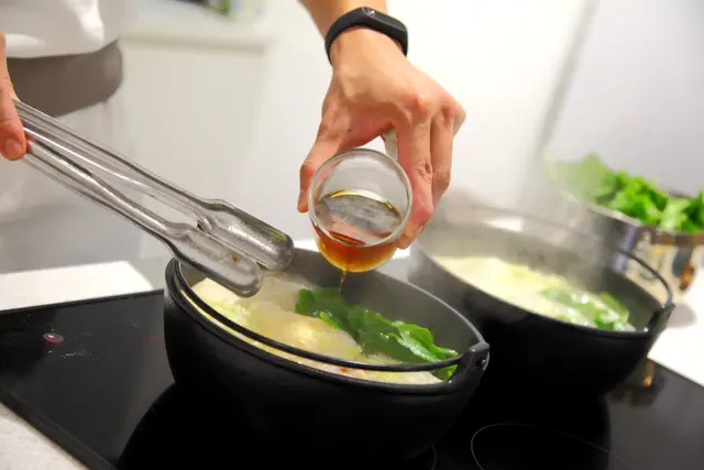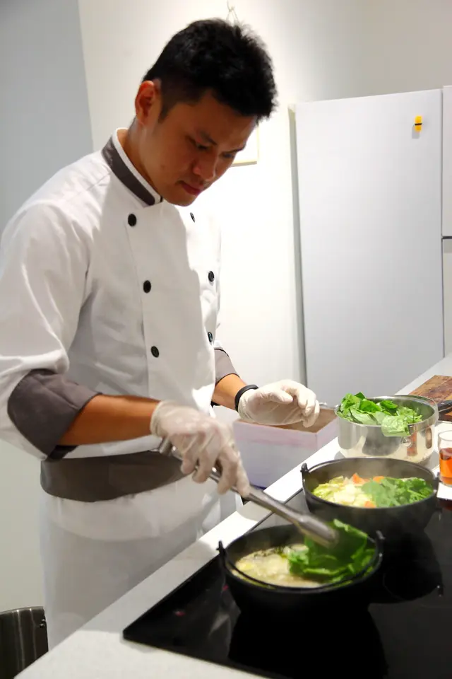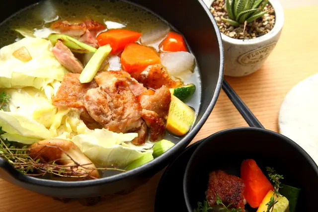 接著將高湯加入蔬菜繼續熬煮,基本上雞湯大叔的套餐都會有這樣一個菜盤,蔬菜的種類會根據時令來做調整,同樣也是天然無毒栽種的嚴選優質蔬菜!