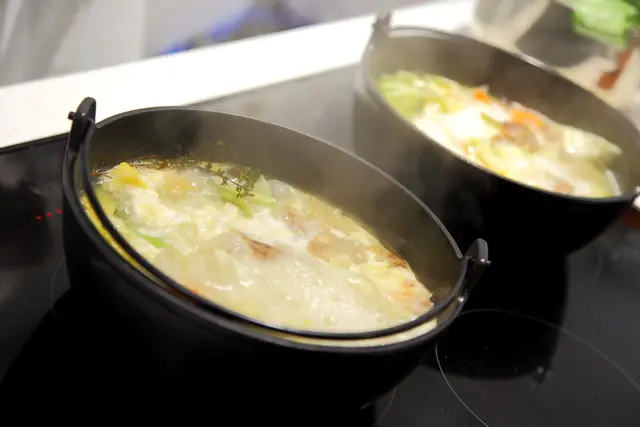 如何將雞湯跳出傳統藩籬,今天雞湯大叔的五星主廚就要當場示範給我們看,白蘭地燉雞是一套鍋物料理,高湯是鍋物料理的靈魂,作基底的高湯是雞湯大叔最自傲的料理,完全無人工添加物,單純使用大量的蔬菜、整隻老母雞,只用新鮮食材熬煮出鮮甜雞湯