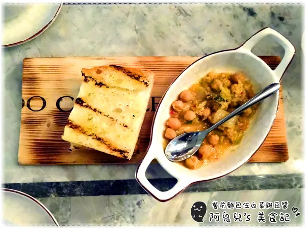 白菜雞豆醬比預期中清爽,能夠吃到白菜的甜度,燉煮的很入味,麵包烤得外酥內軟