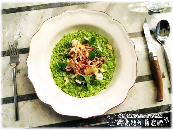 吃一口燉飯就讓我好感動(?)燉飯是吃的到米心的口感,咀嚼時會散發澱粉的甜味